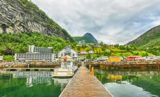 Het pittoreske dorpje Geiranger kent 300 inwoners en is zeer toeristisch ingesteld.